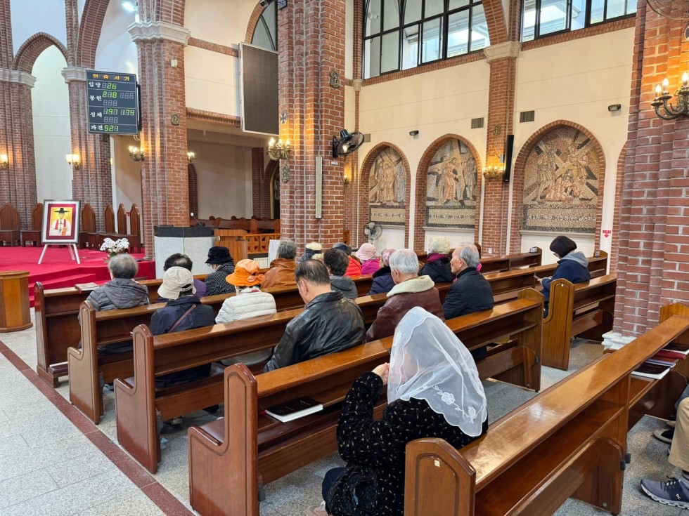 미리내성지는 한국 최초의 사제 성 김대건 안드레아 신부의 묘소가 있는 천주교 성지로, 박해 시대 신자들이 모여 살던 교우촌이 형성되었던 역사적 장소입니다. 단풍이 아름답게 물든 순례길을 걸으며, 어르신들께서는 순교자들의 삶과 신앙을 묵상하고 기도하는 시간을 가졌습니다. 특히 순교자기념성당에서 드린 미사는 깊은 울림을 주었으며 어르신들께서는 감사와 감동의 마음을 나누셨습니다.